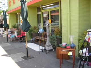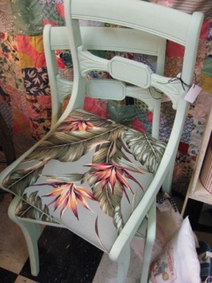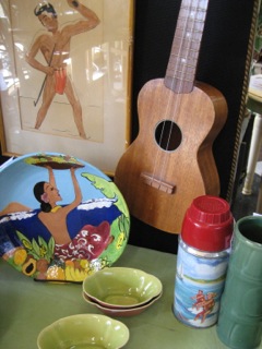 Dealer #55 has this great turquoise rattan chair with a fabulous Hawaiian floral pillow. Sit a spell and unwind with a good book.