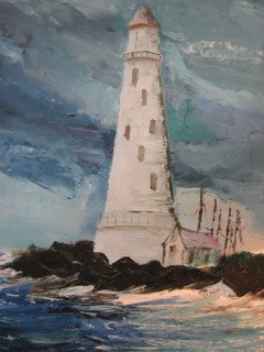 How many lighthouses dot the coastline? I love taking the curves on Highway 101 only to see the lighthouse in the distance on the ridge!! Yet another painting from Dealer #80.
