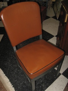 The Greek word kathedra is derived from "kata" for down and "hedra" for sit. Today let's look at the chair and search for variations on a theme. Originally designed to lift one off the cold and damp ground or floor, the chair had it's origin thousands of years ago. Originally a stool or bench served well, and over time a back was added. Our first chair is simple, clean, and functional and comes from Dealer #4. Contrast piping sets off the seat cushion and makes this a nice variation on the wooden office chair.