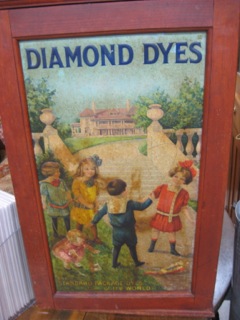 This Diamond Dyes cabinet features children playing in front of their mansion in brightly colored wardrobe. Available from Dealer #92, these cabinets are becoming more difficult to find.