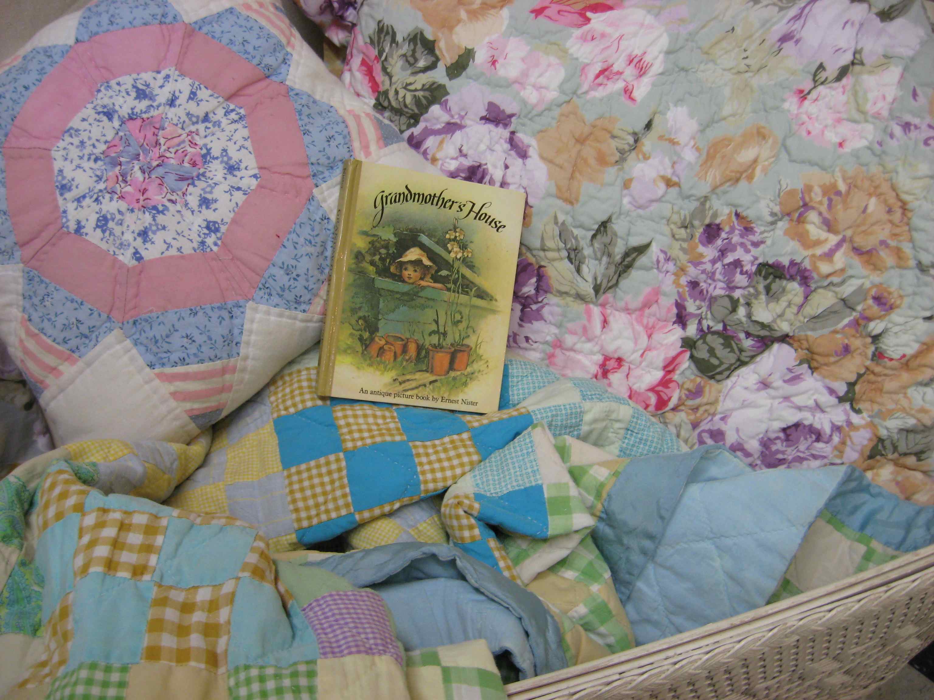 What a sweet color palette Dealer #62 has put together in this white woven bassinet. Patchwork and floral pillows, blankets, and a treasure from Grandma. Afternoon nap anyone?