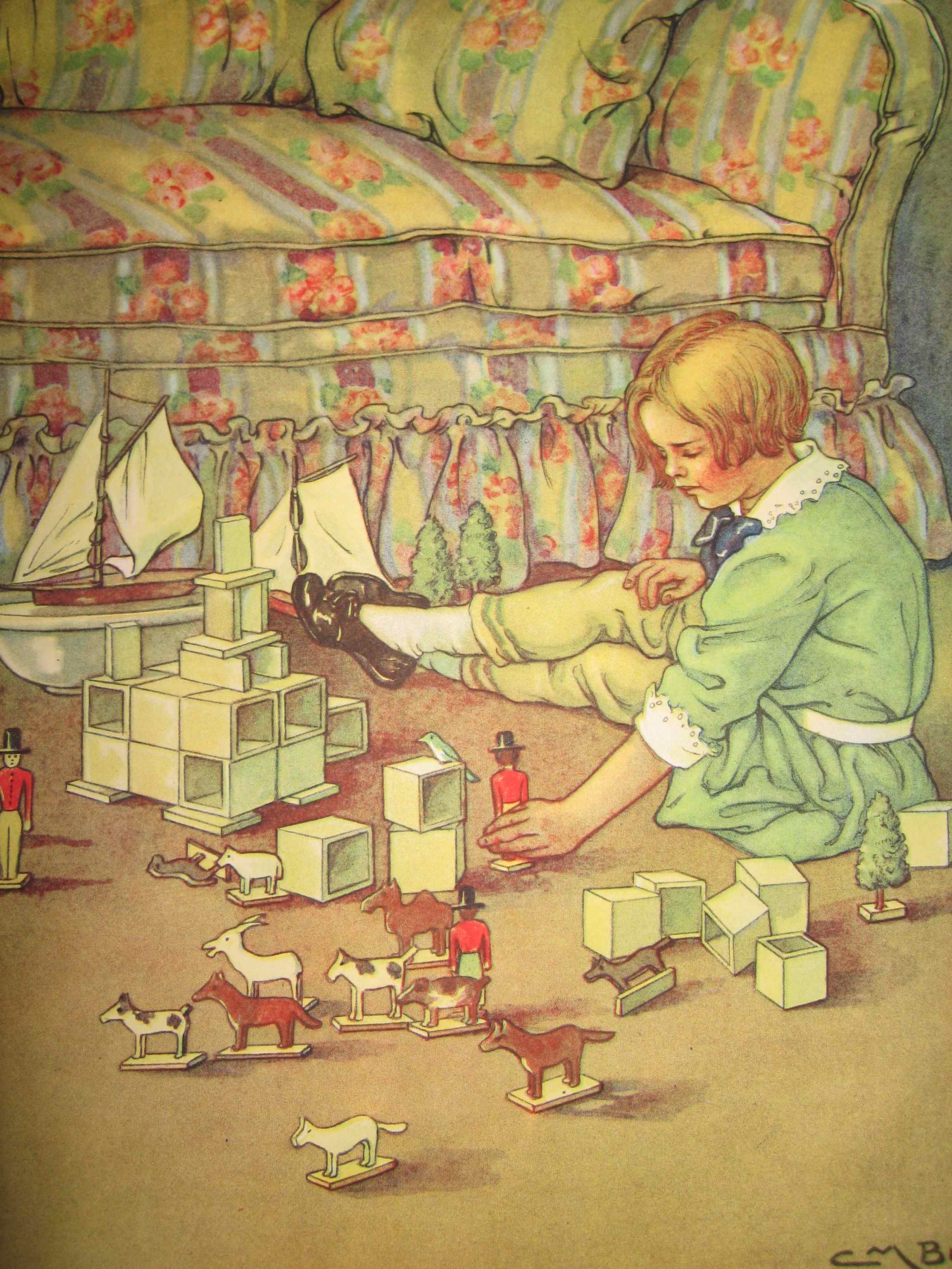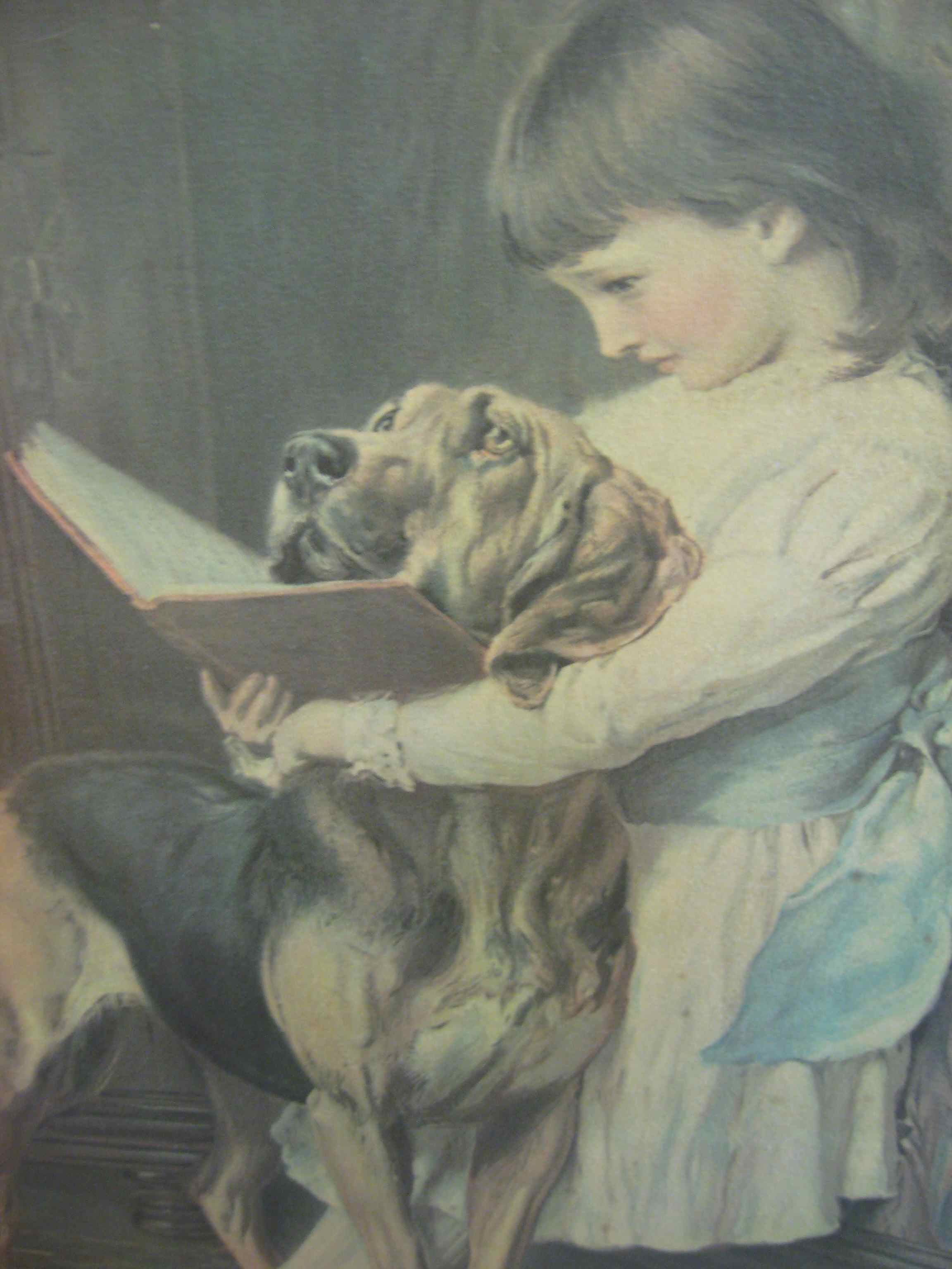 A lovely rendering of a young girl with her best buddy. No doubt this dog sleeps at the foot of the bed when the reading is done. Dealer #4 has this bit of nostalgia; perfect for any child's room.