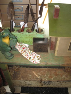 Dealer #25 has a large selection of weathered and distressed garden items to get the shed in working order. From garden tools, tables, statuary, and tool boxes to a tabletop house; lets get organized!