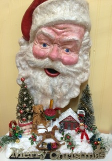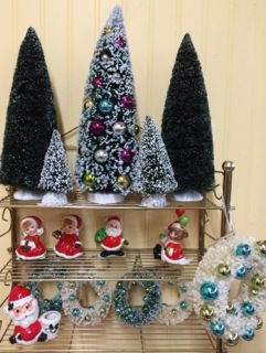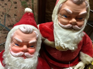 Vintage Santas from Dealer #37 peer over decorations.