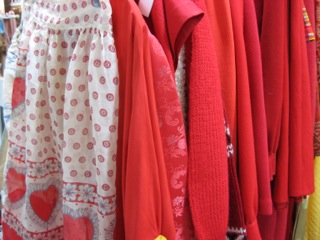 There is such a large selection of red, pink, and fuchsia garments from Dealer #56 it will be hard to choose the right piece. You can't go wrong cooking up something in this "sweet" heart apron. One size fits all.