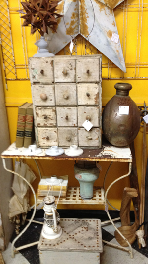 Dealer 44 has this amazing folk art house in their space at Splendid. We have a soft spot in our collecting hearts for folk art so we were drawn into the space when we saw this fabulous piece of folk art. Come house shopping at Stars today.