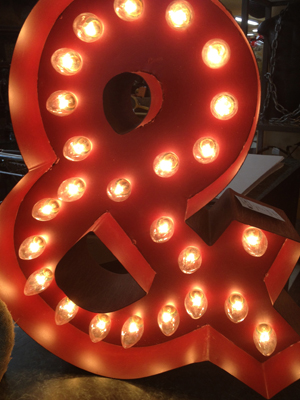 We love vintage signage but it is hard to come by and quite $$$$ these days. So when we saw this reproduction "&" in the Halloween display at Splendid our hearts started beating a bit faster. We love the color. We love the lights and we love the price. $150 from Dealer 99