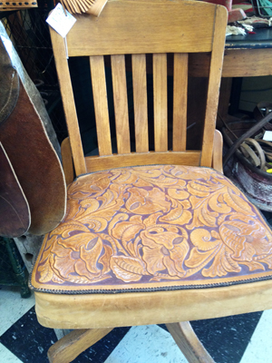 This is the coolest chair we have seen in a long time. The tooled leather on the seat is wonderful. Dealer 170 has it priced at $155.