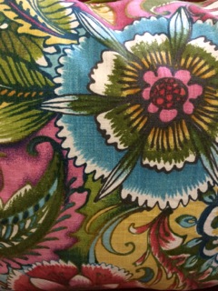 Dealer #57 tosses abstract prints of flowers and pattern atop a simple chair.