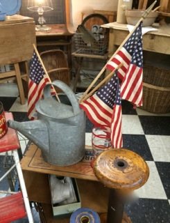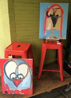 What does it all mean? Take time to ponder on these bold red stools and prints of Jay Hill's art. Available from Dealer #57.