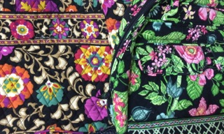 Bold and colorful shoulder bags are covered with bright blooms from Dealer #86.