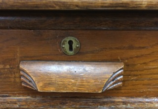 Dealer #72 offers a great desk with plenty of writing surface and wooden drawer pulls.