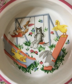 Dealer #82 has a child's bowl with favorite animals enjoying the playground.