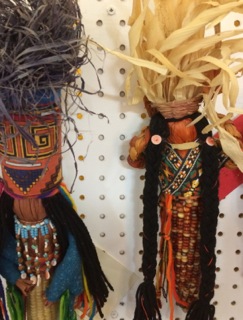 Authentic contemporary corn figures from the Klamath area from Dealer #113 hang on a wall and deserve appreciation.