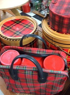 Dealer #37 groups a series of red plaid bags and thermos containers for an instant collection.