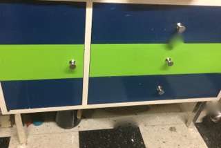 Dealer #84 has a dresser for the bold and brave. Navy and green drawers will give any room a punch of color.