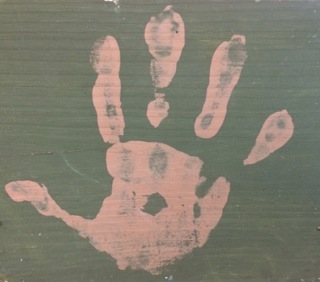 Leave a mark! A simple dark green box gets a quick update with a handprint. Available from Dealer #83.