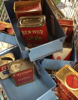 Small containers show classic herbs and spices for a kitchen pantry collection. Available from Dealer #69.