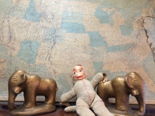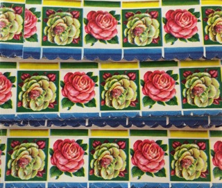 Vintage shelf liners feature flowers and a scalloped edge. Available from Dealer #12.