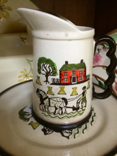 Dealer # 118 reminds us of our daily chores on the horizon as we head back to work following the Holiday break. Metlox Colonial Heritage plates and pitcher.