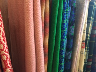 Dealer #57 has a display rack filled with warm and cozy wool blankets and throws.