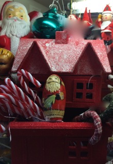 Dealer #19 fills a red house and balcony with peppermint canes and mini Santas!