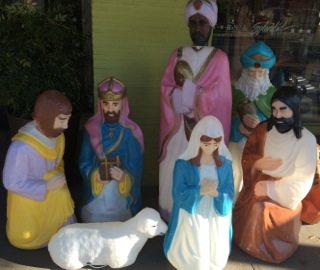 Dealer #99 fills the sidewalk with a large scale vintage Nativity!